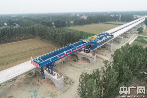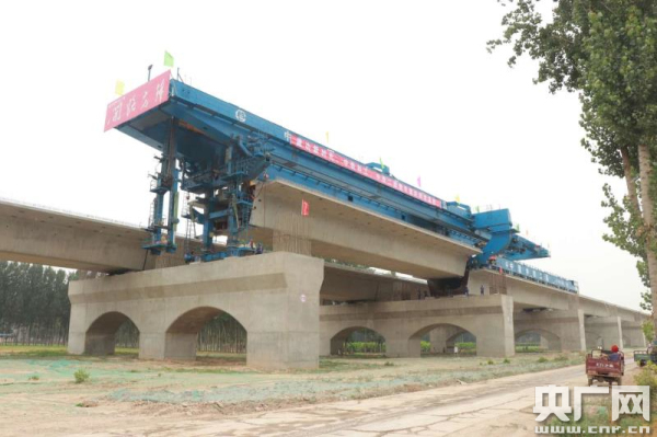 央廣網(wǎng)河南6月26日消息 6月26日,在河南新鄉(xiāng)鄭濟高鐵建設(shè)中,由我國中鐵科工集團機械院自主研制的高鐵施工裝備——40米跨1000噸運架成套設(shè)備,已成功架設(shè)100榀千噸級高鐵箱梁。