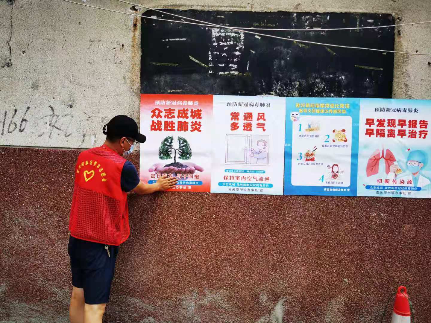 為有效傳遞最新防疫政策和知識(shí),青年志愿者第一時(shí)間在各小區(qū)門前、社區(qū)公告欄中粘貼宣傳頁(yè),利用“小喇叭”對(duì)各街道及居民小區(qū)開(kāi)展防控知識(shí)宣傳,從科普角度來(lái)防范新型肺炎疫情,并積極呼吁廣大市民做到“勤洗手、常通風(fēng)”“不外出、不串門、不聚集”,成為防控宣傳的“移動(dòng)陣地”。