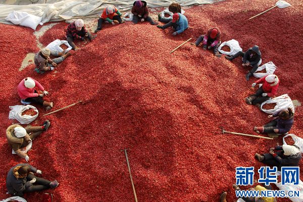 央廣網(wǎng)河南分網(wǎng)消息 據(jù)新華網(wǎng)河南頻道報道:近日,河南省內黃縣種植30余萬畝辣椒喜獲豐收,當?shù)剞r(nóng)民抓住晴好天氣進行摘收、銷售,鄉(xiāng)間處處是一片火紅。(劉肖坤 攝)