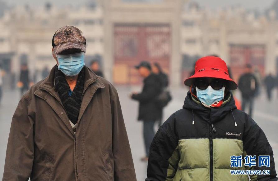 央廣網(wǎng)河南分網(wǎng)消息 據(jù)新華網(wǎng)報道:12月24日,兩名游客戴上口罩游覽北京天壇。當日,北京再遭霧霾侵襲。據(jù)中央氣象臺預(yù)報,24日白天到夜間,河北中南部、北京南部、天津、山西南部、山東北部、河南北部、陜西關(guān)中、江蘇中北部等地空氣污染氣象條件達4~5級,局地可達6級,不利于空氣中污染物擴散,上述大部地區(qū)有中度霾,部分地區(qū)有重度霾。(記者李文攝)