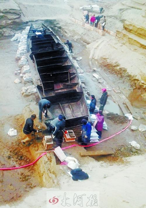 央廣網(wǎng)河南分網(wǎng)消息 據(jù)大河報報道:去年9月23日,本報曾以《中州渠放水,洛河灘沖出古沉船》為題,報道了偃師207國道洛河橋北附近的洛河灘里發(fā)現(xiàn)了一艘木質(zhì)古船,據(jù)考古專家介紹,這是洛陽市洛河沿岸首次發(fā)現(xiàn)保存較好沉船。如今,3個多月過去了,古沉船的現(xiàn)場考古工作基本完成,專家們都有哪些新發(fā)現(xiàn)?古沉船的年代能否確定?未來,古沉船將如何保存?昨日,記者趕赴現(xiàn)場進(jìn)行了解。