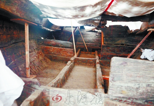 “這些木箱里裝的是青膏泥,是從古船內(nèi)和船周圍挖出來的!睆埲缫庹f,古船周邊沉淀著一層青泥,青泥層只有在水流非常平穩(wěn)的情況下,經(jīng)長時間沉積才會形成。青泥層上面有沙子,說明發(fā)現(xiàn)船只的地方曾經(jīng)是河道?紤]到這艘古沉船的重要性,洛陽市文物部門決定對其實施整體搬遷。為保持古船的原貌,所有和船有關(guān)的東西都將被“打包”帶走,包括船艙內(nèi)外的青膏泥。“在裝箱前,工作人員對青膏泥進(jìn)行了編號,哪個船艙的,船艙中哪一部分的,都進(jìn)行了標(biāo)注,方便將來的復(fù)原。”
