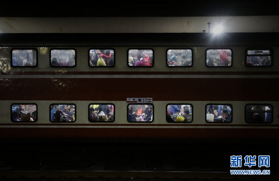 1月16日,旅客在廣州火車站等候列車啟動。一扇扇車窗,就像一個個斑斕的電視屏幕,上演著不同的故事。當(dāng)天凌晨0:49,從廣州火車站始發(fā)的春運首趟臨客列車——廣州至常德的K9286次列車,滿載著2647名旅客順利踏上歸家的旅途。2014年全國春運從1月16日開始,客流量預(yù)計將達36.2億人次。新華社記者 邢廣利攝