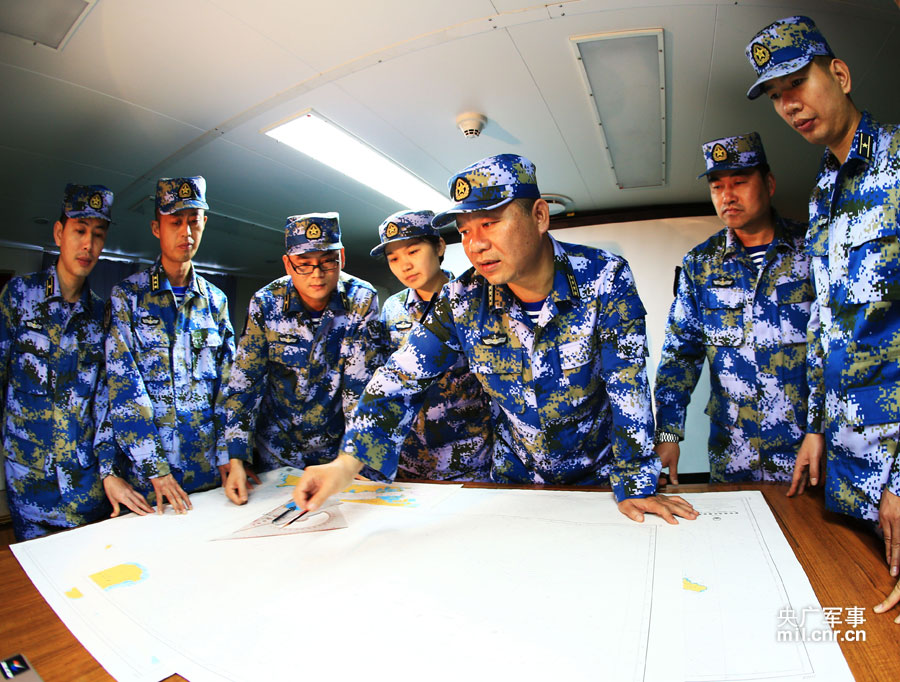 根據(jù)統(tǒng)一安排,中國(guó)海軍艦艇編隊(duì)計(jì)劃搜索海區(qū)位于南緯44度、東經(jīng)91度附近,被稱為咆哮的西風(fēng)帶,一年四季海況都比較差,特別是受涌浪影響,平均浪高在3米以上,最高可達(dá)6至8米。針對(duì)搜尋海區(qū)的特點(diǎn),航渡過(guò)程中,編隊(duì)海上任務(wù)指揮所按照上級(jí)通報(bào)的搜索區(qū)域,精心研究海區(qū)的水文氣象,特別是洋流和西風(fēng)帶的數(shù)據(jù)信息,調(diào)整完善搜救方案預(yù)案。與此同時(shí),潛水分隊(duì)、掃測(cè)分隊(duì)、醫(yī)療分隊(duì)和艦載直升機(jī)組也都進(jìn)行了充分的準(zhǔn)備,并多次開(kāi)展針對(duì)性訓(xùn)練。
