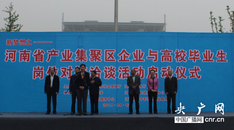 央廣網河南分網消息 (記者 魏林甫)4月12日上午,“2014年河南省產業(yè)集聚區(qū)企業(yè)與高校畢業(yè)生崗位對接洽談活動啟動儀式”在河南財經政法大學舉行,河南省副省長王艷玲出席并宣布活動啟動。