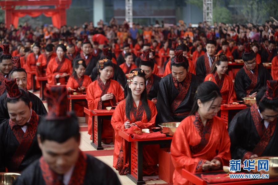 央廣網(wǎng)河南分網(wǎng)消息 據(jù)新華網(wǎng)河南頻道報道:當日,阿里巴巴集團為102對新人在杭州阿里巴巴西溪園區(qū)舉行了傳統(tǒng)的漢服婚禮,其中絕大部分新人為阿里巴巴員工,阿里巴巴集團董事局主席馬云為新人證婚。(記者 鞠煥宗 攝)