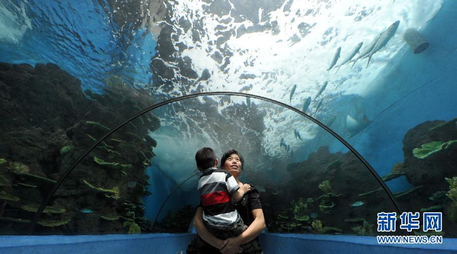 2011年7月15日,小輝媽媽帶著小輝來到合肥海洋世界看海洋動(dòng)物。顧小輝是合肥一所孤獨(dú)癥兒童康復(fù)訓(xùn)練學(xué)校的學(xué)生。為了給患孤獨(dú)癥的小輝看病,小輝的媽媽帶著他從金寨縣的農(nóng)村來到合肥,踏上漫長而艱辛的康復(fù)訓(xùn)練之路。(記者 劉軍喜攝)