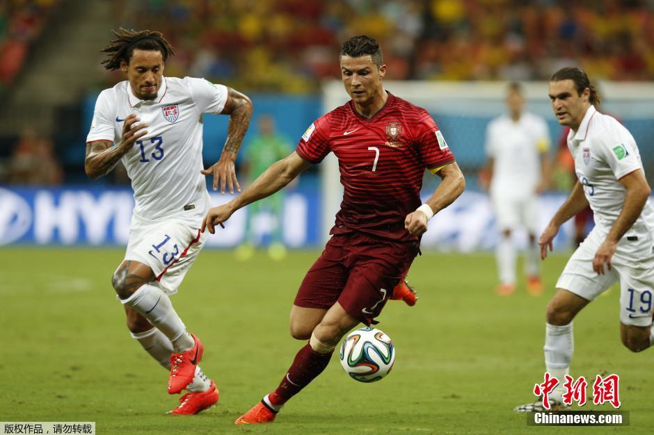 北京時間6月23日06:00,2014年巴西世界杯G組第二輪一場焦點戰(zhàn)在瑪瑙斯的亞馬遜體育城舉行,葡萄牙隊2-2美國隊。納尼在第5分鐘為葡萄牙率先進(jìn)球,瓊斯和鄧普西在下半時各入一球,美國隊完成逆轉(zhuǎn)。第94分鐘,C羅助攻,瓦雷拉頭球破門。