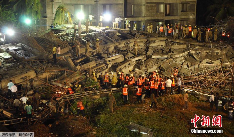 當(dāng)?shù)貢r(shí)間2014年6月28日,在印度新德里,救援人員在樓房倒塌事故現(xiàn)場(chǎng)工作。印度首都新德里一座11層的在建建筑當(dāng)日倒塌,目前已造成至少11人死亡,另有數(shù)十人被困。