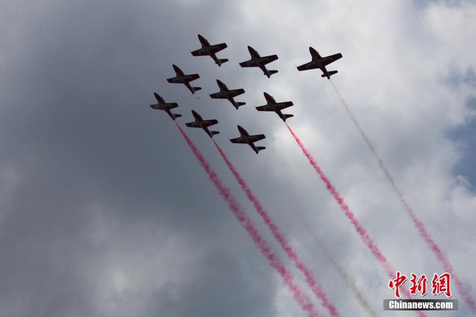 活動現(xiàn)場的飛行編隊表演(中新社發(fā) 徐長安 攝)