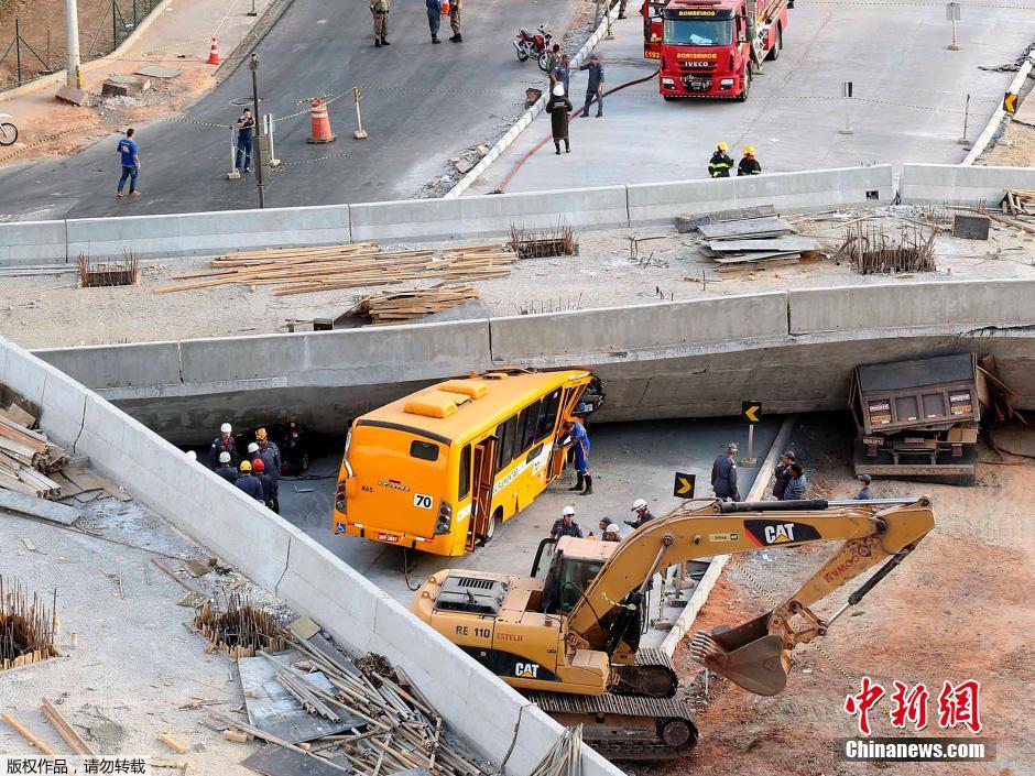 當(dāng)?shù)貢r間2014年7月3日,巴西貝洛奧里藏特,巴西世界杯舉辦城市貝洛奧里藏特一處高架橋發(fā)生坍塌,已經(jīng)造成至少一人死亡,有一輛大客車、兩輛建筑卡車和一輛小汽車被壓在了下面。