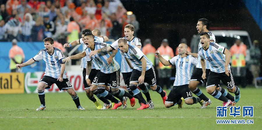 央廣網(wǎng)河南分網(wǎng)消息 據(jù)新華網(wǎng)報(bào)道:當(dāng)日,在巴西圣保羅伊塔蓋拉球場(chǎng)進(jìn)行的2014年巴西世界杯半決賽中,阿根廷隊(duì)與荷蘭隊(duì)在120分鐘內(nèi)戰(zhàn)成0比0平。最終通過(guò)點(diǎn)球大戰(zhàn),阿根廷隊(duì)以4比2戰(zhàn)勝荷蘭隊(duì),闖入決賽。 新華社記者周磊攝