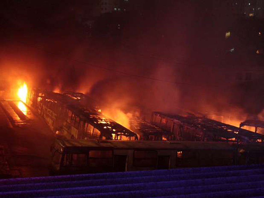 公交車站內(nèi)數(shù)輛大巴被焚毀
