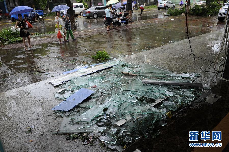 7月19日,廣東徐聞縣城一家旅館的玻璃幕墻完全破碎。 7月18日19時(shí)30分前后,今年第9號臺風(fēng)“威馬遜”在廣東湛江徐聞縣龍?zhí)伶?zhèn)沿海再次登陸,登陸時(shí)中心附近最大風(fēng)力17級(超強(qiáng)臺風(fēng)級)!巴R遜”過境后,廣東湛江徐聞縣城內(nèi)滿目瘡痍,電力等城市基礎(chǔ)設(shè)施遭受重創(chuàng)。(新華社 記者 梁旭 攝)