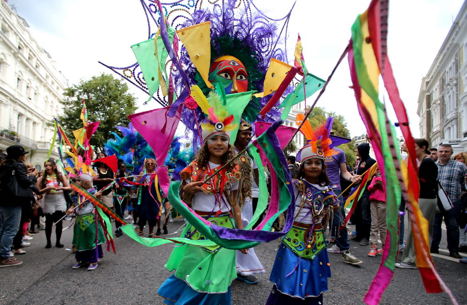 諾丁山狂歡節(jié)起源于1964年,由當時聚居在諾丁山地區(qū)的特立尼達移民發(fā)起,至今已演變成規(guī)模宏大的多元文化節(jié),其規(guī)模僅次于巴西里約熱內(nèi)盧狂歡節(jié),每年吸引大批來自世界各地的游客。(記者 韓巖攝)