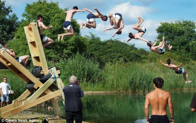 據(jù)英國(guó)《每日郵報(bào)》當(dāng)?shù)貢r(shí)間2014年8月30日?qǐng)?bào)道,一對(duì)兄弟,26歲的Johannes Schrieber與他的哥哥28歲的Daniel,建造了一個(gè)木制機(jī)械,可以將人彈射出去12米,高度可以達(dá)到5米。兩兄弟用這“人體彈弓”將自己射進(jìn)湖水中,而他們發(fā)明的初衷竟然是認(rèn)為這比乘飛機(jī)要便宜。他們共募集到700英鎊的捐款,每一分錢都用在了刀口上,至今還沒(méi)有人死亡。 (網(wǎng)頁(yè)截圖)