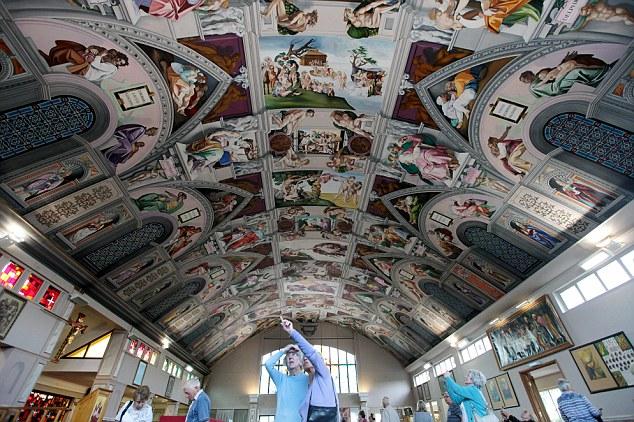 據(jù)英國《每日郵報》9月2日報道(具體拍攝時間不詳),位于英國蘇塞克斯的殉道圣人天主教堂因完美復制了梵蒂岡西斯廷教堂米開朗琪羅的畫作而廣為人知,其內(nèi)部天花板上繪制了西斯廷教堂米開朗琪羅的作品,這也是全世界唯一的復制本。許多來自世界各地的游客紛紛前來觀賞。這一創(chuàng)舉的締造者只是一名以繪制廣告牌、標語為生的工人,他在1987年游覽過梵蒂岡之后,出于興趣和熱愛,便開始這項浩大工程,總耗時5年半。(網(wǎng)頁截圖)
