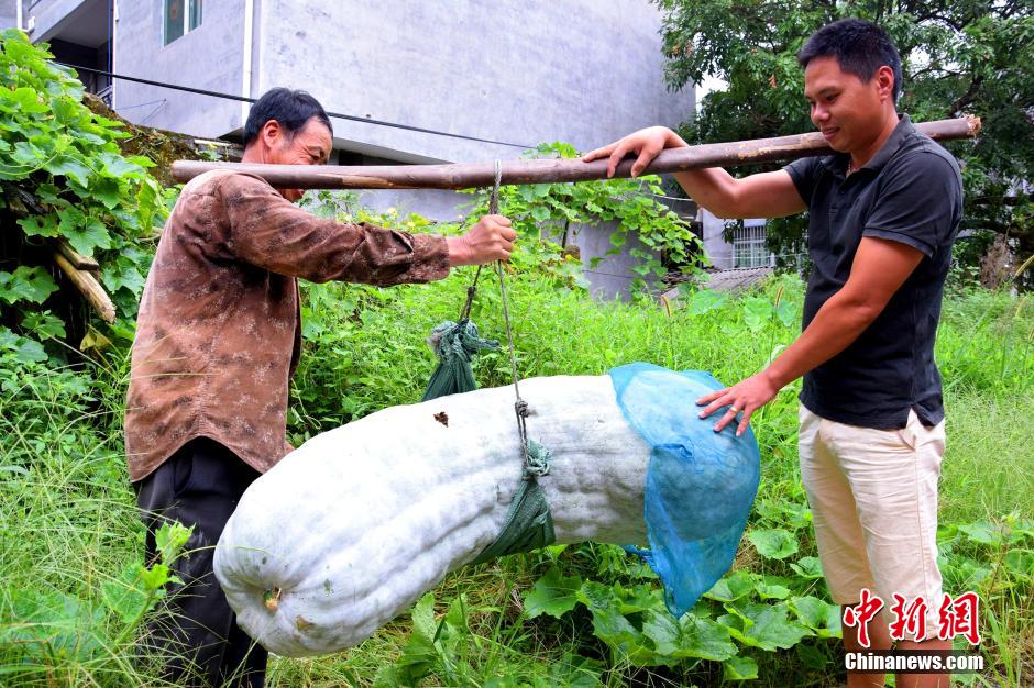 央廣網(wǎng)河南分網(wǎng)消息 據(jù)中新網(wǎng)報道:近日,福建寧德市蕉城區(qū)霍童鎮(zhèn)興賢村一農(nóng)戶種出一個重達(dá)173.5斤的巨型冬瓜,體長150厘米。據(jù)農(nóng)戶介紹,家里以往每年都能種出20多個七八十斤重的冬瓜,長出這么大還是頭一回。