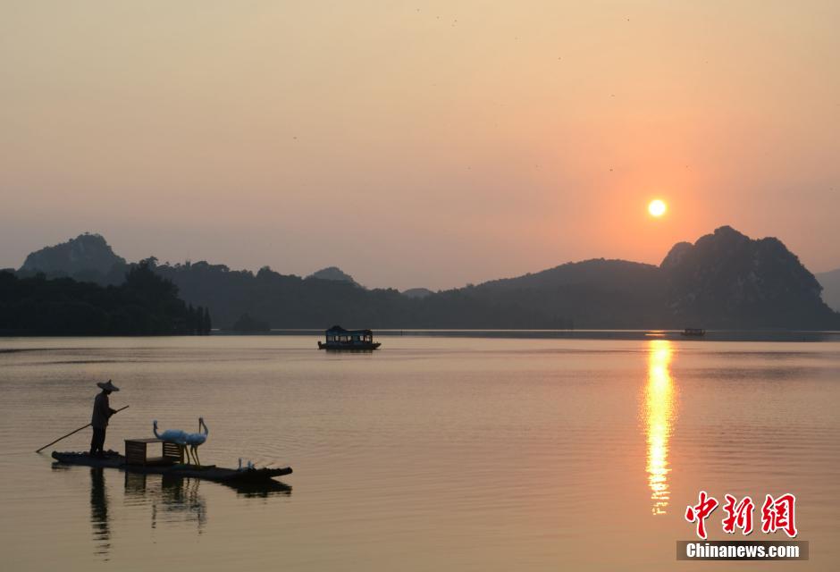 9月18日,“臥佛含丹”的星湖美景!芭P佛含丹”是肇慶七星巖二十景之一,每年出現(xiàn)在清明、中秋前后的晴天。廣州五羊天象館齊步云稱,今年星湖觀賞臥佛含丹奇景的最佳時(shí)間段為9月16日至22日,即秋分前后的7天內(nèi)。當(dāng)?shù)厥忻穹Q,臥佛含丹之時(shí),遙對(duì)臥佛祈?缮眢w健康、延年益壽、幸福和滿。中新社發(fā) 黃耀輝 攝