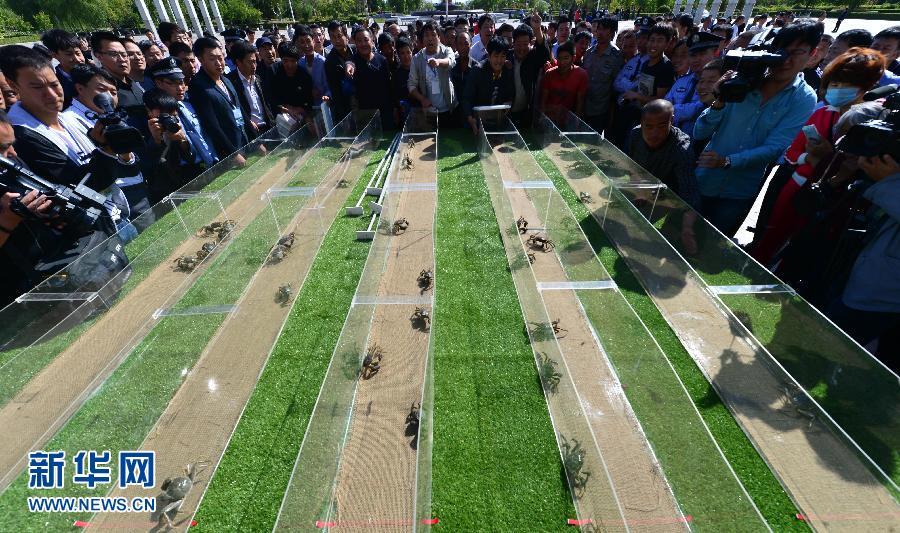 9月24日,觀眾圍觀河蟹競速賽。當(dāng)日,“旭海杯”河蟹趣味運動會在遼寧省盤錦市盤山縣政府廣場舉行。本次河蟹趣味運動會設(shè)置了河蟹障礙賽、競速賽、爬坡賽,另外,群眾還可以拿起吊桿、戴上手套進(jìn)行釣螃蟹、抓螃蟹比賽。新華社記者 楊青 攝 圖片來源:新華網(wǎng)
