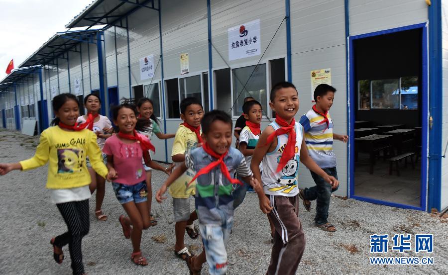央廣網(wǎng)河南分網(wǎng)消息 據(jù)新華網(wǎng)報道:10月12日,永平鎮(zhèn)第一中心小學的學生在參觀新建的板房學校。當日,由中國青少年發(fā)展基金會募集72萬元為云南景谷地震災(zāi)區(qū)搭建的首所板房抗震希望小學在云南景谷縣永平鎮(zhèn)落成。該學校建成的首批24間板房教室,能滿足永平鎮(zhèn)第一中心小學一至四年級24個教學班1457名學生復(fù)課。新華社記者 陳海寧 攝