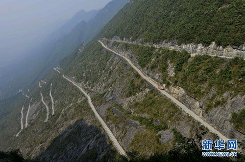 央廣網(wǎng)河南分網(wǎng)消息 據(jù)新華網(wǎng)報(bào)道:10月12日,一輛汽車(chē)行駛在湖北省恩施市新塘鄉(xiāng)雙木公路扯根坡段。位于湖北省恩施土家族苗族自治州恩施市新塘鄉(xiāng)的雙木公路(雙河至木栗園),是一條全長(zhǎng)約20公里的鄉(xiāng)村公路,該公路經(jīng)過(guò)名為扯根坡的大懸崖,長(zhǎng)約4.4公里,非常險(xiǎn)峻,猶如掛在懸崖上,被稱(chēng)為“壁掛”公路。