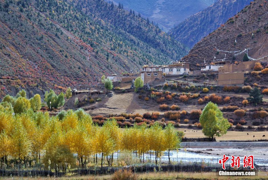 10月中旬以來,國道318川藏線西藏昌都地區(qū)境內(nèi),迎來一年中最美的季節(jié),藏房、河流、雪山、金色的樹林構(gòu)成一幅幅美麗的畫卷,讓人流連忘返。圖為西藏昌都國道318川藏線路邊的秋色。中新社發(fā) 劉忠俊 攝