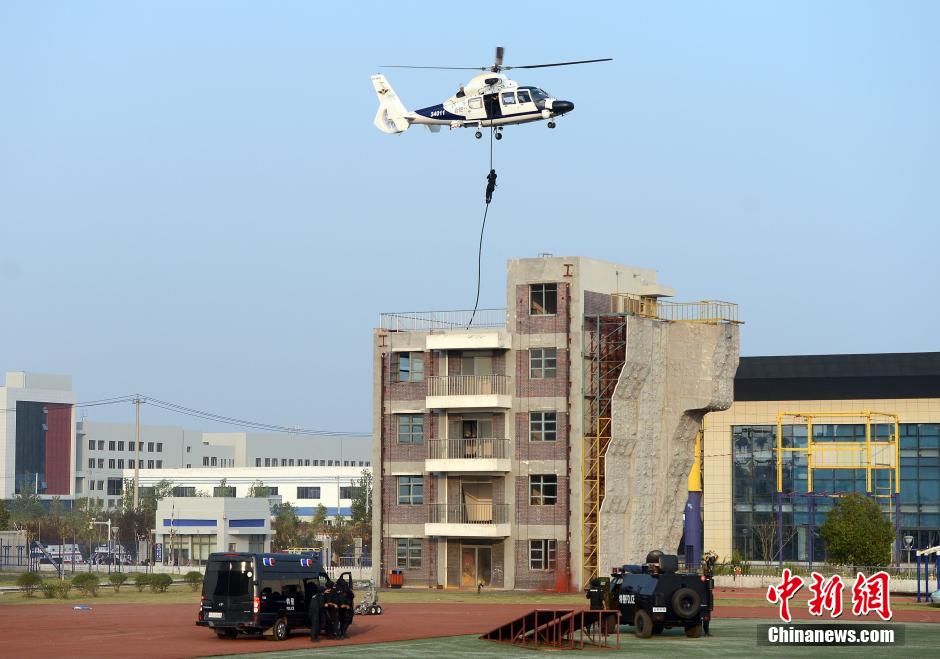 央廣網(wǎng)河南分網(wǎng)消息 據(jù)中國新聞網(wǎng)報道:10月26日,合肥市公安局特警支隊在進(jìn)行攀登索降演習(xí)。當(dāng)日安徽省“江淮2014—利劍行動”反恐綜合演習(xí)在合肥特警支隊訓(xùn)練基地舉行,現(xiàn)場包括特警、武警、消防、衛(wèi)生、通信管理、電力公司、住建、交通運輸?shù)?支處置力量、600余名應(yīng)急人員、77臺應(yīng)急車輛參加演習(xí)。此次演習(xí)分為應(yīng)急力量拉動和現(xiàn)場實戰(zhàn)處置兩部分。 中新社發(fā) 張婭子 攝