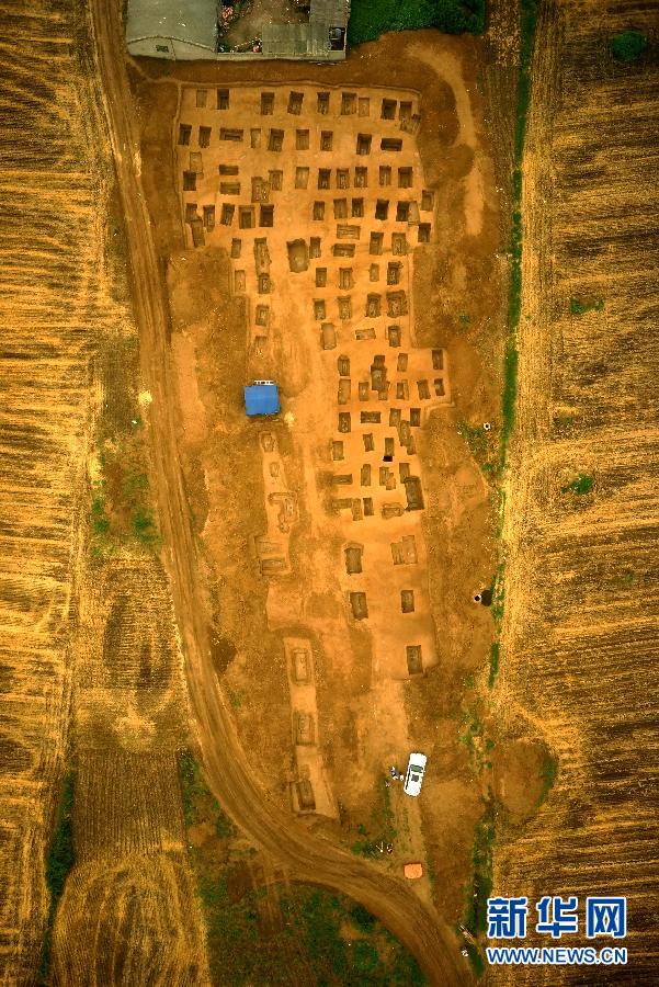 央廣網(wǎng)河南分網(wǎng)消息 據(jù)新華網(wǎng)報(bào)道:在南水北調(diào)中線工程文物考古發(fā)掘工作中,考古人員在河南漯河市發(fā)現(xiàn)一處戰(zhàn)國(guó)至西漢時(shí)期的大型墓葬群,所有墓葬均保存完整(2013年6月8日攝)。河南省在過(guò)去9年相繼完成南水北調(diào)中線工程總干渠、丹江口庫(kù)區(qū)和受水區(qū)地下考古發(fā)掘和文物保護(hù)工作,從8000年前的裴李崗文化到明清時(shí)期的重要發(fā)現(xiàn)不斷出現(xiàn),一部綿延不絕記載中華文明進(jìn)程的天然“地書”被漸次打開(kāi)。河南是南水北調(diào)文物搶救保護(hù)的主戰(zhàn)場(chǎng),需要考古發(fā)掘和搬遷的文物點(diǎn)369個(gè),占中線工程文物保護(hù)工作總量的60%以上。2005年以來(lái),在全國(guó)50多家文物考古研究單位的共同努力下,河南目前圓滿完成369個(gè)項(xiàng)目的考古發(fā)掘工作,發(fā)現(xiàn)了裴李崗文化、仰韶文化、龍山文化以及由夏代至清代等各個(gè)時(shí)期的大量古代文化遺跡。新華社記者 朱祥 攝