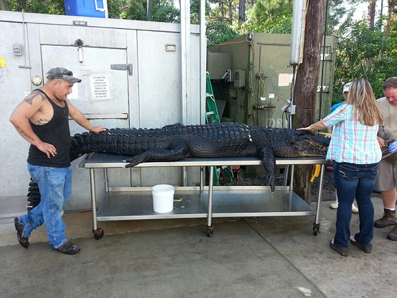 央廣網(wǎng)河南分網(wǎng)消息 據(jù)國(guó)際在線(xiàn)報(bào)道:經(jīng)過(guò)幾個(gè)月的跟蹤,美國(guó)東南部佛羅里達(dá)州兩個(gè)獵人僅用繩子、一些鉤子和他們自己的力量,赤手空拳捕獲了一條重765磅(約346公斤),長(zhǎng)達(dá)13英尺(約合4米)長(zhǎng)的鱷魚(yú)。