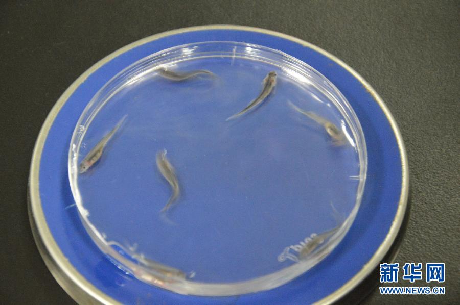 10月29日,中華鱘魚苗在培養(yǎng)皿中游弋。中國長江三峽集團公司中華鱘研究所近日透露,中華鱘全人工繁殖獲重大技術突破——曾參與過全人工繁殖的子一代中華鱘雌魚再次成熟并產(chǎn)卵出苗,這在中華鱘人工繁殖歷史上尚屬首次。對于中華鱘的物種保護具有重要意義。中華鱘是中國特有的古老珍稀魚類,也是世界現(xiàn)存魚類中最原始的種類之一,在地球上已繁衍生息1.4億年,被譽為“水中大熊貓”。