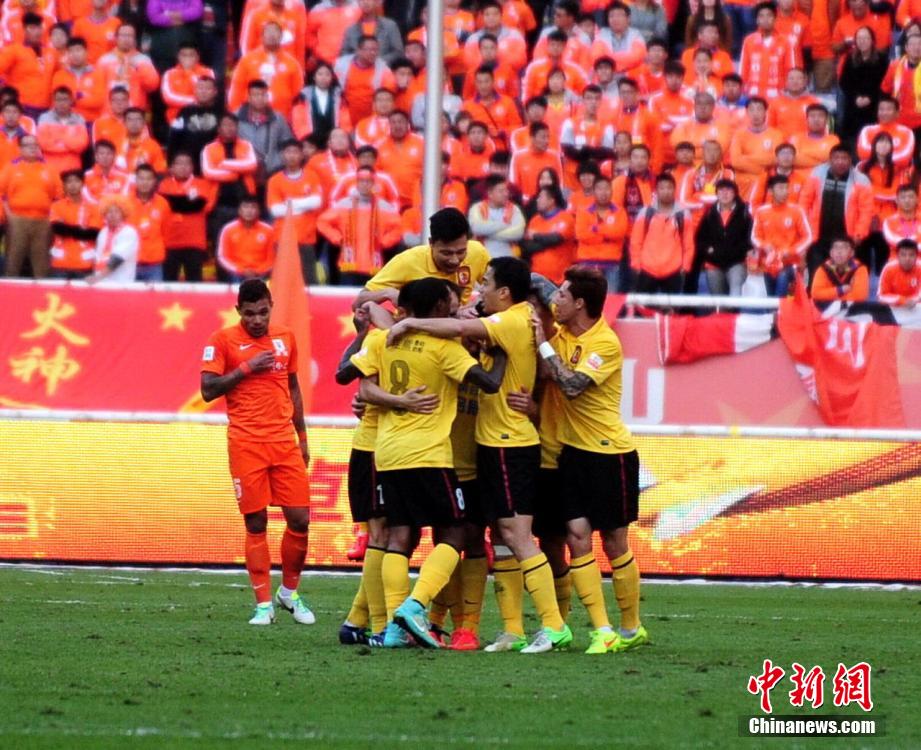 11月2日,中超最后一輪展開(kāi)一場(chǎng)焦點(diǎn)戰(zhàn)役,魯能坐鎮(zhèn)主場(chǎng)迎戰(zhàn)衛(wèi)冕冠軍恒大。上半場(chǎng),劉彬彬第11分鐘單刀球破門(mén)。第43分鐘,埃爾克森禁區(qū)外遠(yuǎn)射扳平。下半場(chǎng)易邊再戰(zhàn),雙方再無(wú)破門(mén),最終恒大客場(chǎng)1-1戰(zhàn)平魯能,實(shí)現(xiàn)中超四連冠。圖片來(lái)源:Osports全體育圖片社