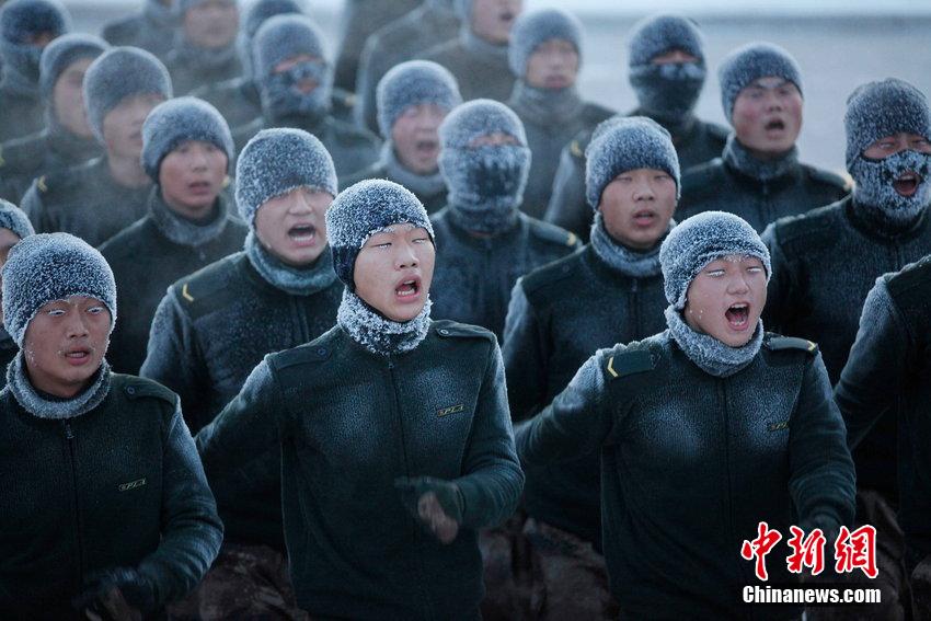 2014年12月16日,黑龍江省黑河市,黑龍江省軍區(qū)某邊防團(tuán)機(jī)動步兵連官兵冒著零下30多度嚴(yán)寒氣溫進(jìn)行體能訓(xùn)練,挑戰(zhàn)極寒,鍛造鋼筋鐵骨,錘煉過硬意志品志。該連素有“世界冠軍的搖籃”之稱,曾有5人24人次登上世界軍事五項(xiàng)冠軍的領(lǐng)獎臺。新時(shí)期,他們將“拼搏進(jìn)取、勇爭第一”的冠軍精神融入到建連育人之中,連隊(duì)建設(shè)不斷邁上新臺階。圖片來源:CFP視覺中國