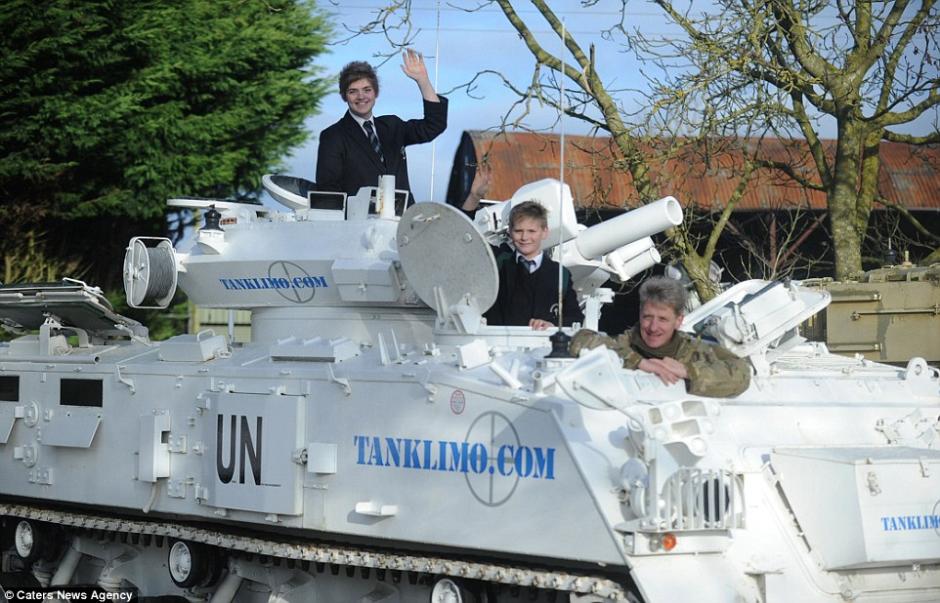 據(jù)《每日郵報》2014年12月17日報道,一名父親發(fā)明了一個讓自己的兩個兒子不管刮風(fēng)下雨,每天按時上學(xué)的好辦法—每天駕駛一輛重達(dá)17噸的坦克送他們上學(xué)。軍事迷Nick Mead共擁有總計價值兩百萬、130余輛可以合法上路的坦克,這意味著他的兩個兒子每天可以自己選擇一輛坦克,讓父親送他們上學(xué)。他們的座駕就算在惡劣的大雪天也絲毫不受影響。Nick表示,他兒子的同學(xué)們每次看到他們的坦克時都目瞪口呆,而且他也很享受其他父母臉上的那種吃驚的表情。(網(wǎng)頁截圖)