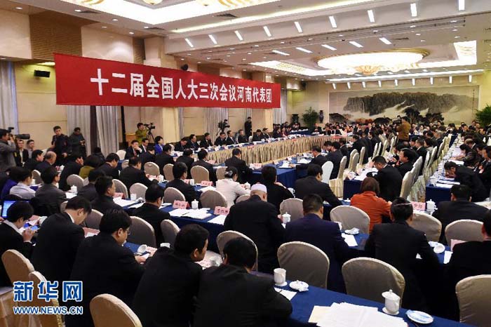 新華網(wǎng)河南頻道3月6日電 3月5日,十二屆全國(guó)人大三次會(huì)議河南代表團(tuán)舉行全體會(huì)議。 新華社記者李博 攝