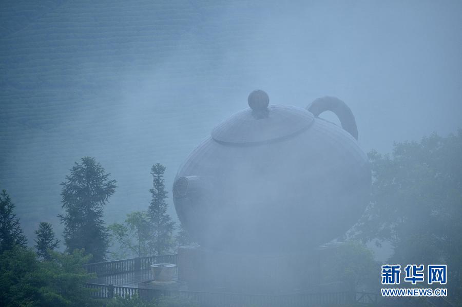 央廣網(wǎng)河南分網(wǎng)消息 春夏之交,湖北名茶“伍家臺(tái)貢茶”發(fā)源地——恩施土家族苗族自治州宣恩縣伍家臺(tái)村時(shí)常云霧繚繞,茶山上一把直徑16.5米、高10米的巨型茶壺因此“熱氣騰騰”,為茶園增添了別樣的風(fēng)情。新華社發(fā)(宋文 攝)