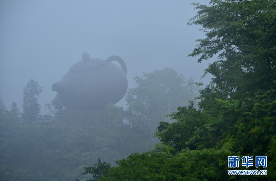這是5月5日在湖北省宣恩縣伍家臺(tái)村拍攝的巨型茶壺。