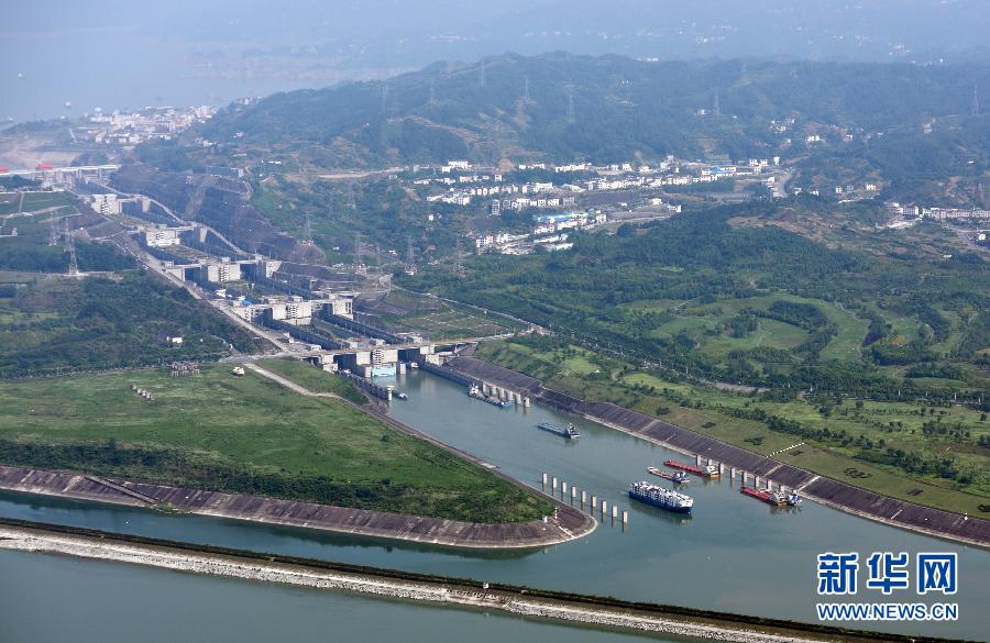 5月30日拍攝的長江三峽五級船閘。