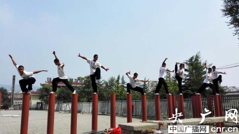 少林寺武僧文武學(xué)校學(xué)員展示武技