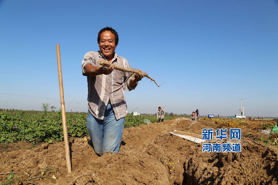 10月27日,河南省溫縣趙堡鎮(zhèn)西辛莊村農(nóng)民梁進(jìn)喜在采挖鐵棍山藥。