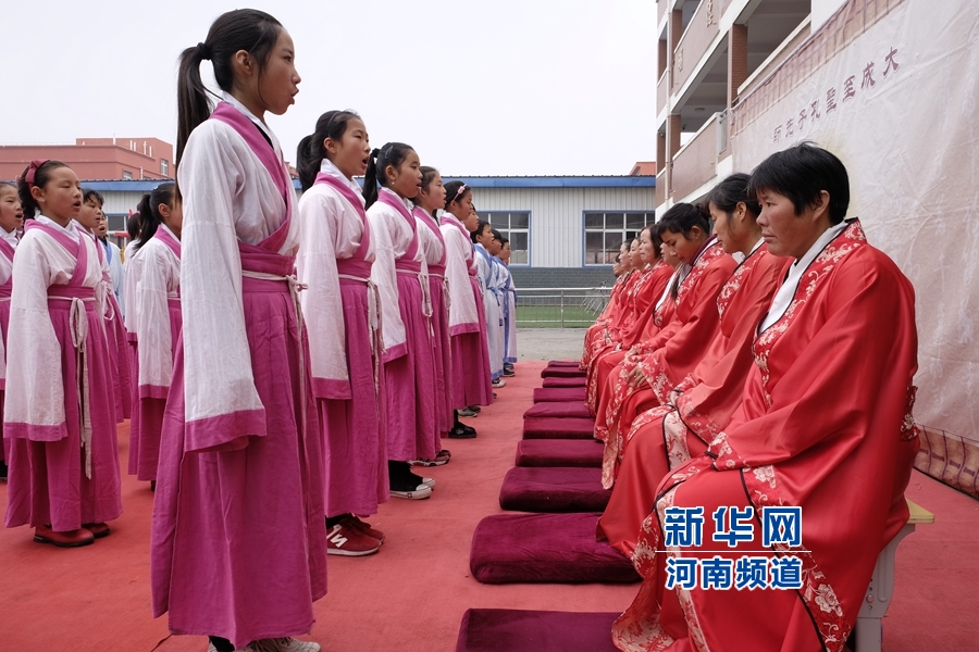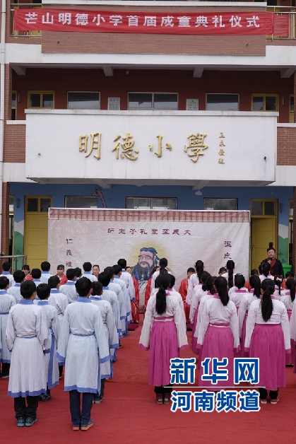 央廣網(wǎng)河南分網(wǎng)消息 近日,芒碭山漢文化旅游區(qū)舉辦“漢禮進(jìn)校園”活動,河南省永城市芒山鎮(zhèn)各中小學(xué)紛紛刮起“漢風(fēng)”,著漢服、行漢禮、啟童智、拜先師、跪父母……