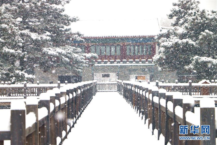 央廣網(wǎng)河南分網(wǎng)消息 當(dāng)日,河北北部地區(qū)迎來(lái)大范圍降雪,承德市著名皇家園林、世界文化遺產(chǎn)避暑山莊被白雪覆蓋。 新華社發(fā)(劉環(huán)宇 攝)