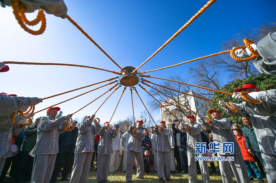 央廣網(wǎng)河南分網(wǎng)消息 當(dāng)日,位于黃河岸區(qū)的洛陽市吉利區(qū)的新春文化廟會(huì)上,來自該區(qū)的30位老硪(wò)工,向市民重現(xiàn)了省級非物質(zhì)文化遺產(chǎn)——黃河“硪工號子”歌謠——熱火朝天的激情場景。