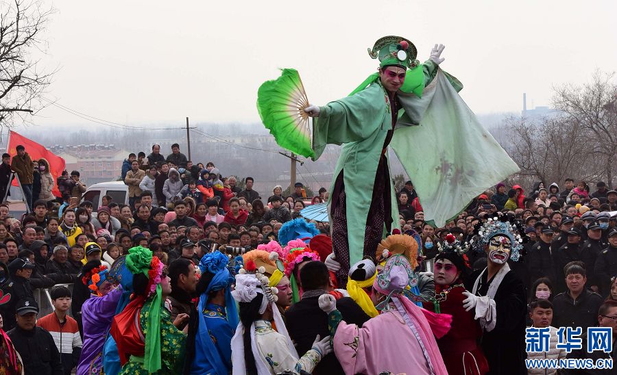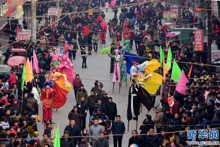 當(dāng)日,河南省?h正月古廟會(huì)舉行民間社火大賽,精彩紛呈的抬閣、舞獅、踩高蹺等表演吸引了周邊市縣及來自晉、冀、魯、皖等省的眾多游客。河南浚縣正月古廟會(huì)已有1600多年歷史,從每年農(nóng)歷正月初一持續(xù)到二月初二,被譽(yù)為鄉(xiāng)村里的“狂歡節(jié)”。