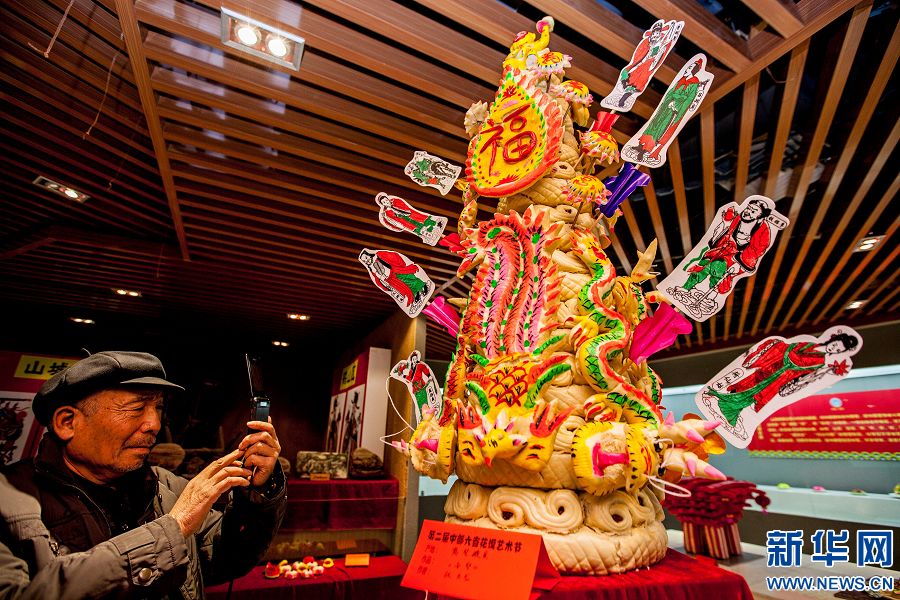 近日,在河南省鶴壁市舉行的花饃藝術(shù)節(jié)上,300余件千姿百態(tài)、色彩斑斕的創(chuàng)意花饃作品亮相。