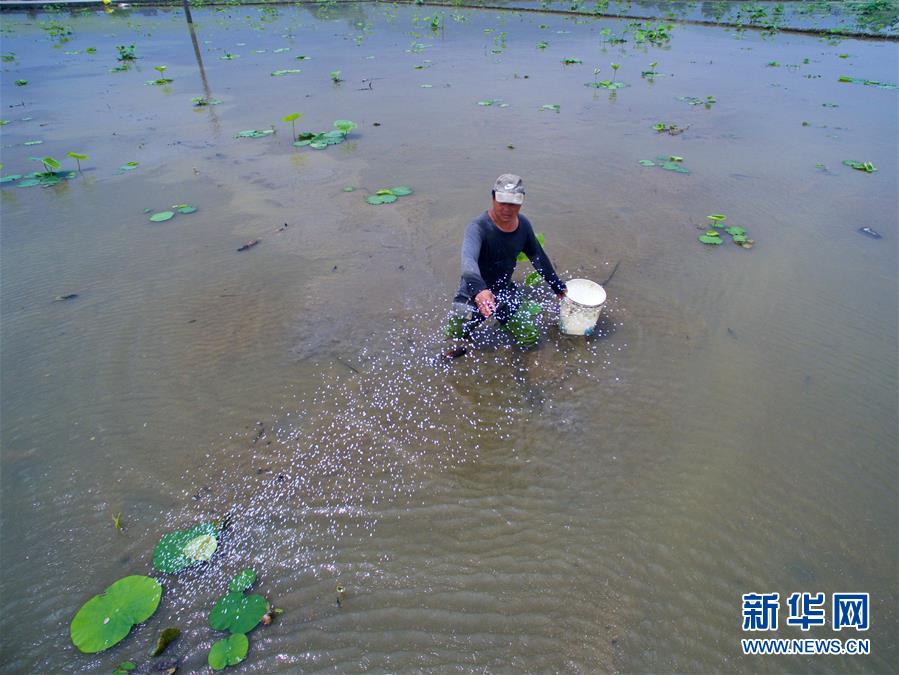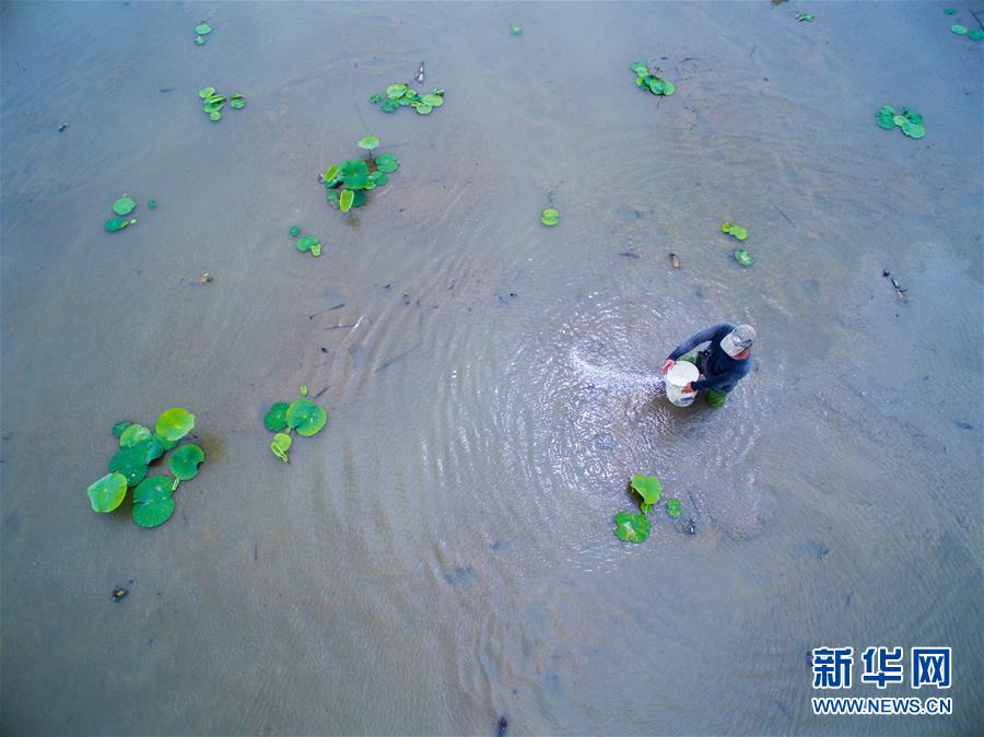 5月5日,福州市閩侯縣南通鎮(zhèn)曹浦村村民為藕田施肥。當(dāng)日是二十四節(jié)氣中的立夏,福建省福州市閩侯縣南通鎮(zhèn)蔬菜基地一派繁忙景象,當(dāng)?shù)夭宿r(nóng)利用晴好天氣搶抓農(nóng)時(shí),精耕細(xì)作,爭取有個(gè)好收成。新華社記者 姜克紅 攝