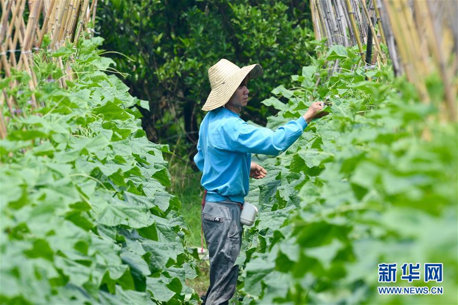 5月5日,福州市閩侯縣南通鎮(zhèn)瓜山村村民在修整瓜秧。當(dāng)日是二十四節(jié)氣中的立夏,福建省福州市閩侯縣南通鎮(zhèn)蔬菜基地一派繁忙景象,當(dāng)?shù)夭宿r(nóng)利用晴好天氣搶抓農(nóng)時(shí),精耕細(xì)作,爭取有個(gè)好收成。新華社記者 姜克紅 攝