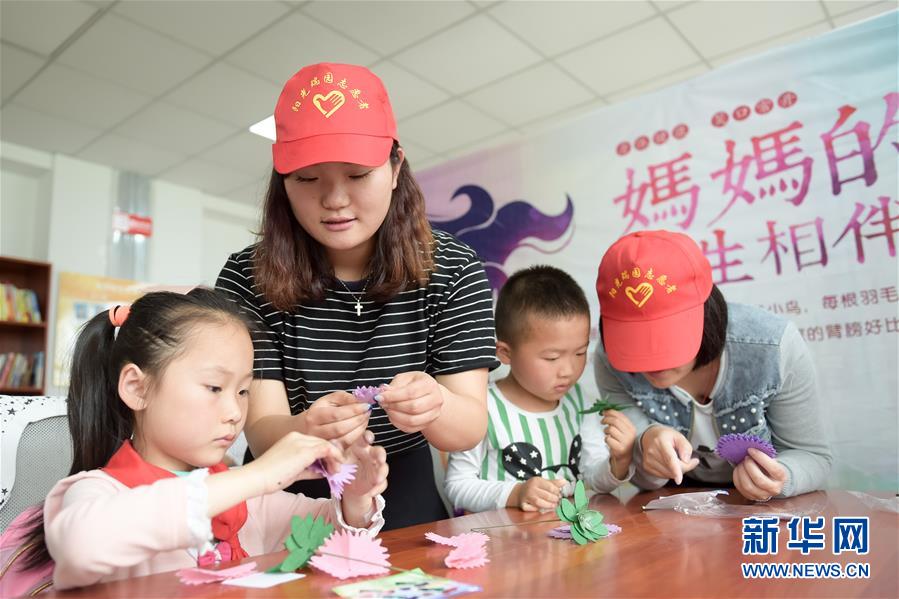 5月5日,在合肥市濱湖瑞園社區(qū)服務(wù)中心,幾名小朋友在志愿者的指導(dǎo)下制作手工藝品,準(zhǔn)備送給自己的媽媽作為節(jié)日禮物。當(dāng)日,安徽省合肥市舉辦豐富多彩的活動,迎接即將到來的母親節(jié)。 新華社記者 張端 攝