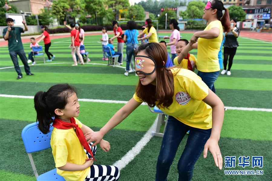 5月5日,在合肥市華府駿苑小學(xué),一名母親在趣味比賽中蒙眼找到自己的孩子。當(dāng)日,安徽省合肥市舉辦豐富多彩的活動,迎接即將到來的母親節(jié)。 新華社記者劉軍喜攝