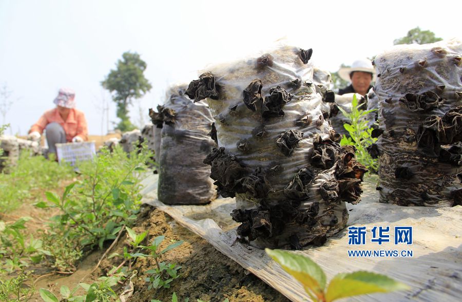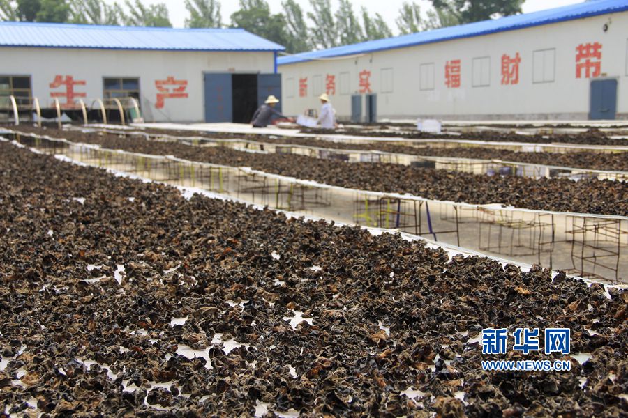 6月11日,在河南省安陽市內(nèi)黃縣綠惠菌業(yè)種植基地,農(nóng)場工人正在晾曬黑木耳。據(jù)了解,河南省內(nèi)黃縣綠惠菌業(yè)種植基地主要利用秸稈、廢鋸末為原料,發(fā)展黑木耳食用菌栽培項(xiàng)目,既避免了焚燒秸稈對(duì)環(huán)境的污染又獲得較高的經(jīng)濟(jì)效益。目前,該基地栽培的50萬袋黑木耳菌袋已開始采摘上市,預(yù)計(jì)經(jīng)濟(jì)效益在200多萬元。新華網(wǎng)發(fā)(劉肖坤 攝)